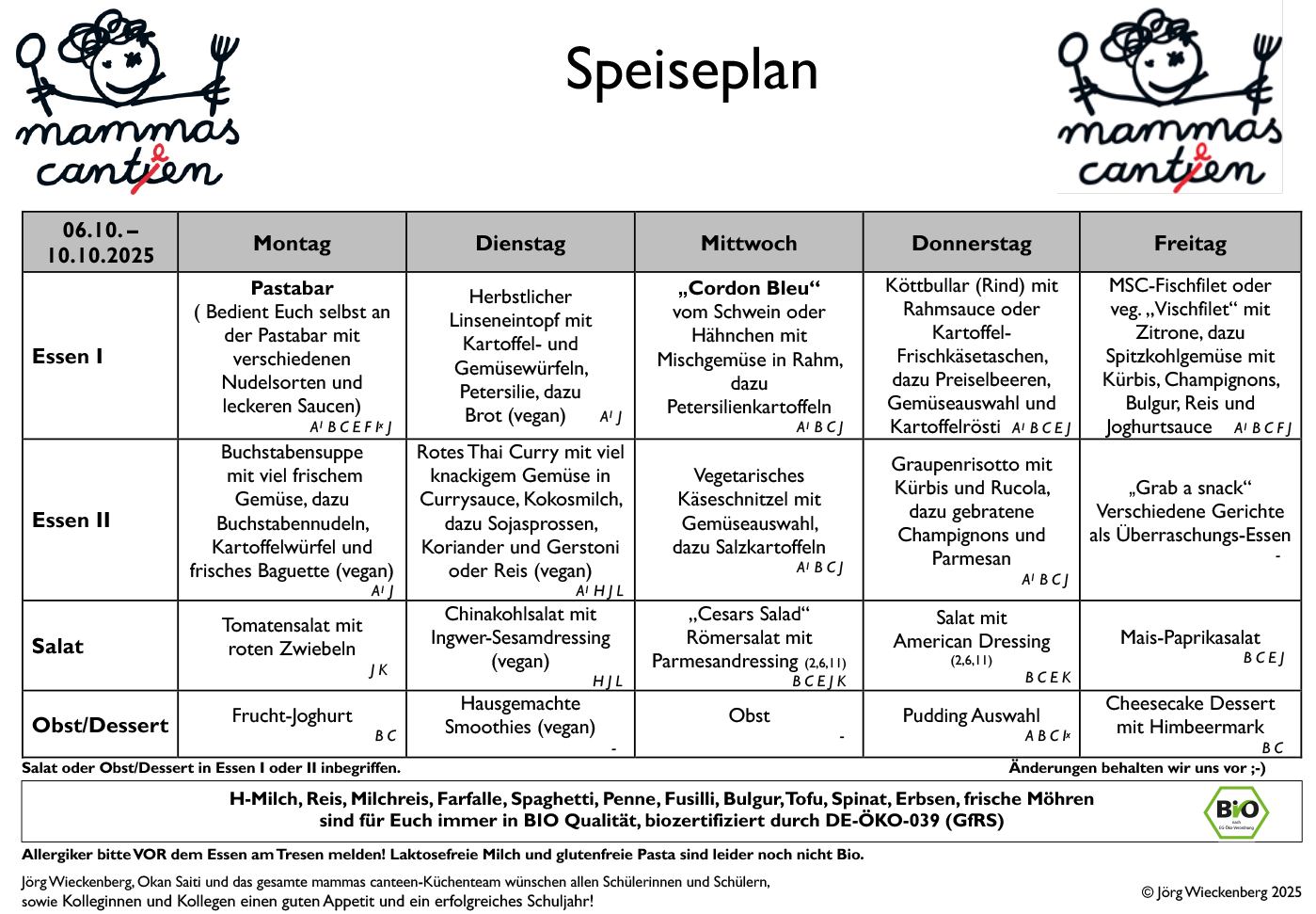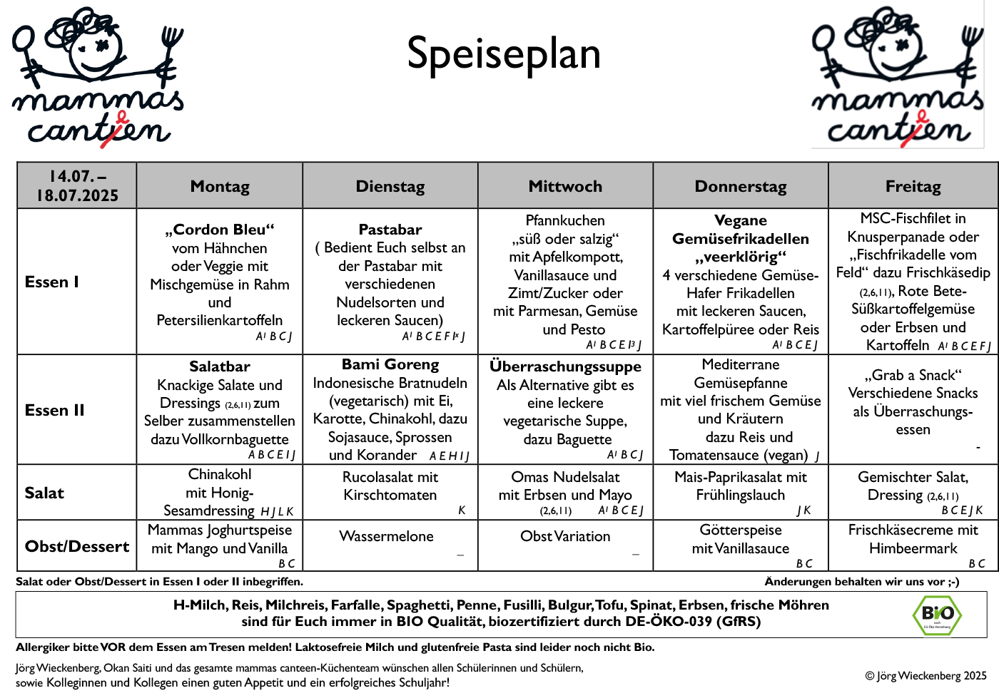 Unsere Speisepläne sind stark an den Empfehlungen der DGE (Deutschen Gesellschaft für Ernährung) angelehnt. Das Ziel ist eine abwechslungsreiche und gesunde Ernährung unserer Schüler zu unterstützen - Sie aber auch an Dinge heranzuführen, die nicht auf dem Wunschzettel stehen. Ein wichtiges Ziel ist vor allem auch, sie satt zu bekommen!